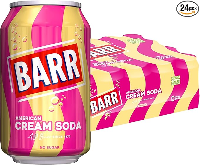 BARR since 1875, 24 Pack American Cream Soda, Zero No Sugar Sparkling Soft Drink with a Creamy Taste of American Cream Soda, "Fizzingly Fun" - 24 x 330ml CansBARR since 1875, 24 Pack American Cream Soda, Zero No Sugar Sparkling Soft Drink with a Creamy Taste of American Cream Soda, “Fizzingly Fun” – 24 x 330ml Cans
